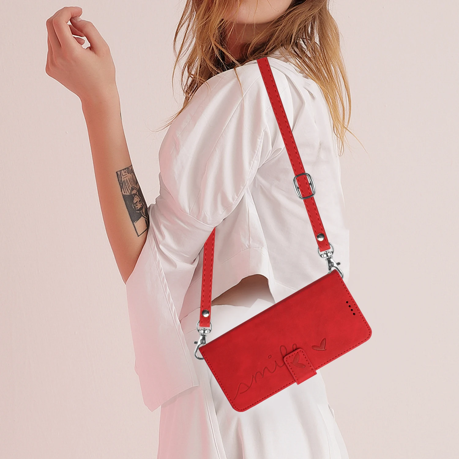Color: Purple Pink, Ships From: CHINA, Material: ABS - Love Heart Strap Leather Crossbody Phone Wallet Case Book Stand For Google Pixel 8 7 Pro 8A 7A 6A Girls Cute Shoulder Cover