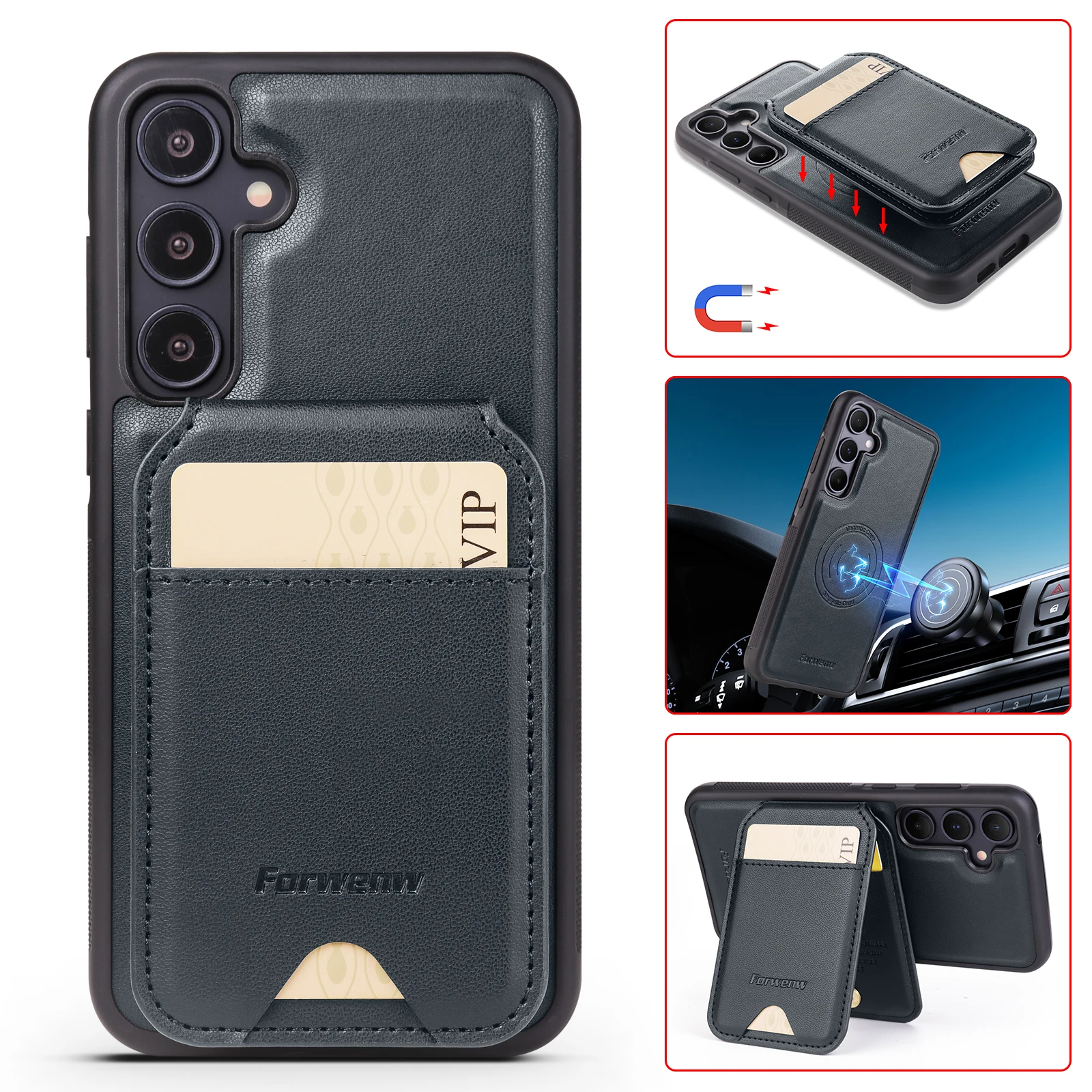 Color: Brown, Compatibility by Model: Galaxy S24+ - Leather Case For Samsung Galaxy A16 A36 A56 A55 A35 A15 A25 S25 S24 Ultra S23 S22 Plus + 2 in 1 Detachable Vertical Wallet Cover