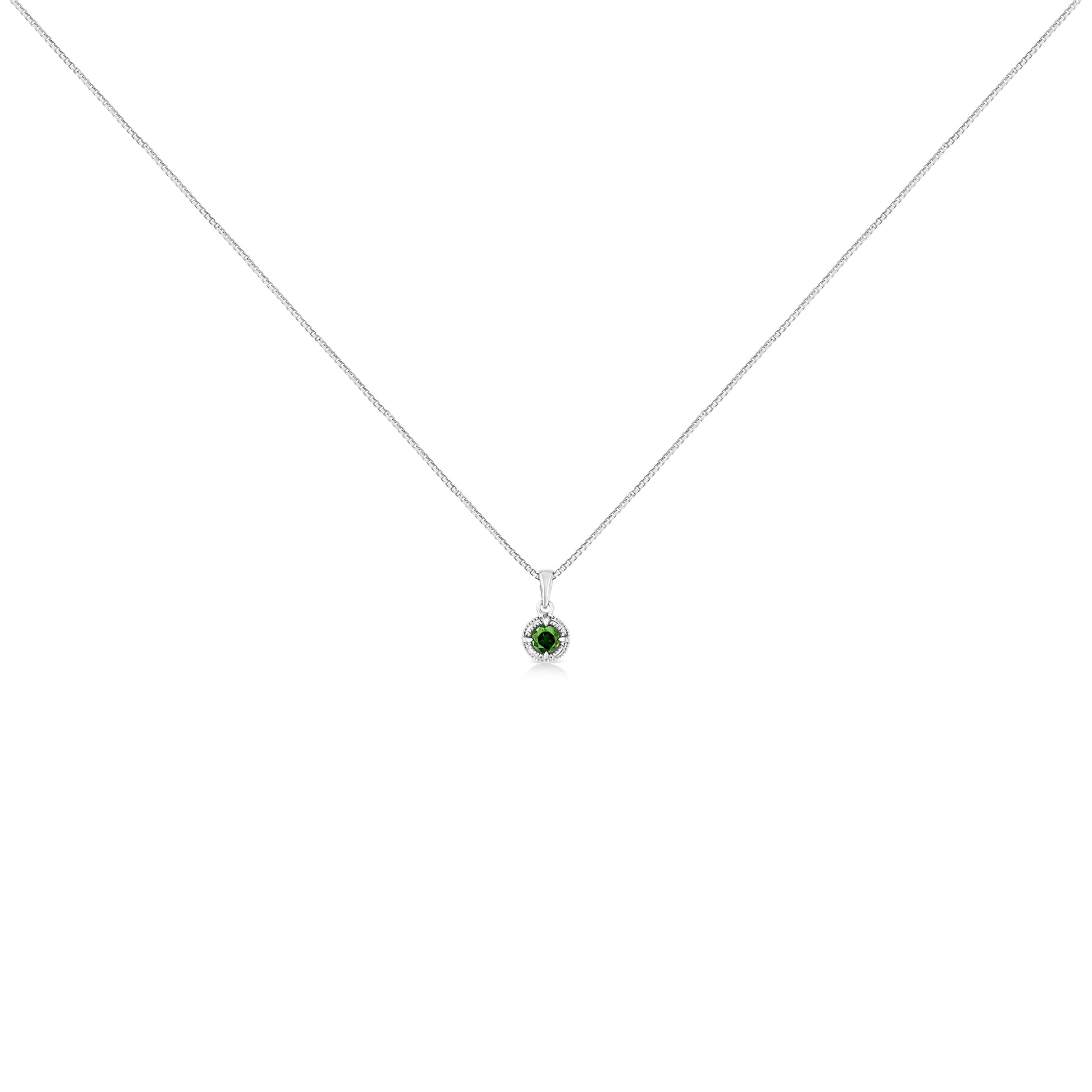 Collar con colgante milgrain de 45,7 cm y solitario de diamante verde tratado de 1/5 ct en plata de ley 925 (color verde, claridad I1-I2)