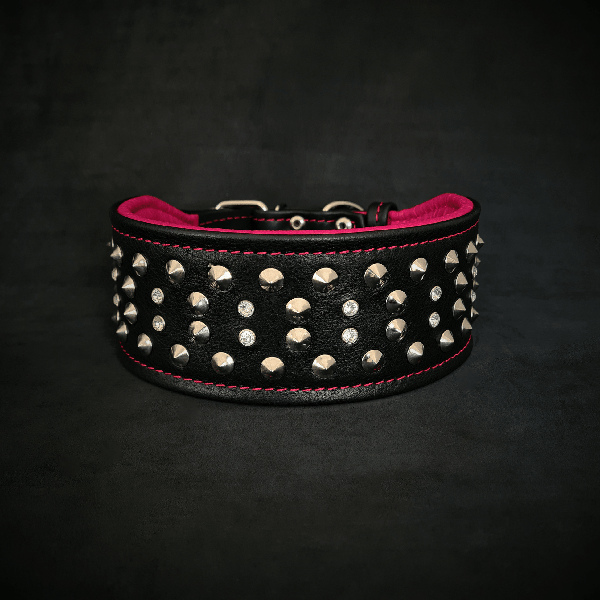 " collar is unique in its conception. It is made out of 2 base layers of leather coated with soft leather. This conception makes the collar very durable and soft at the same time. In addition to it`s convenience it has a soft cushion fitted on the inside.