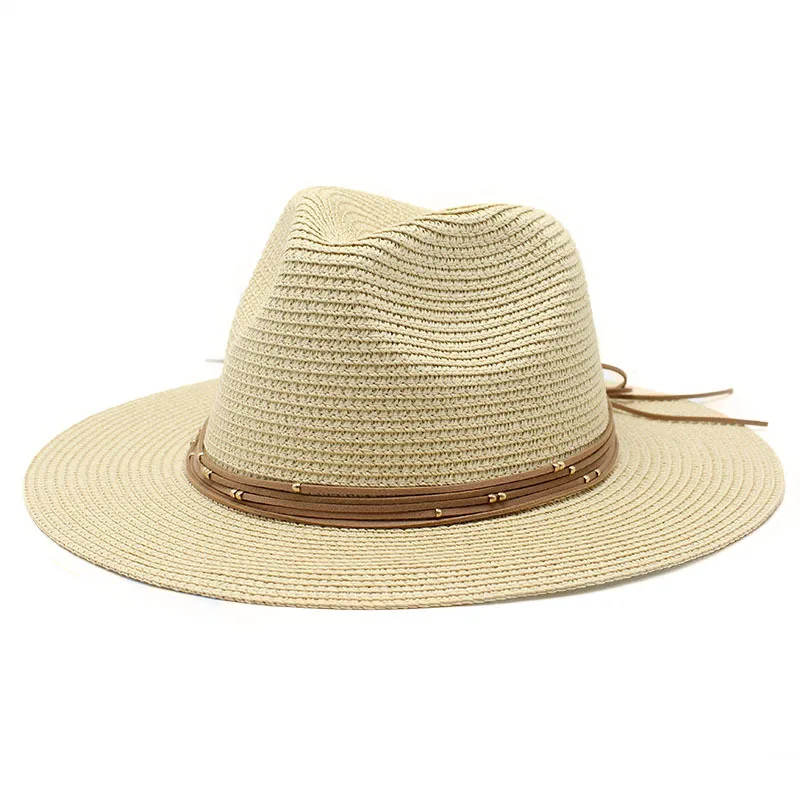 Color: Lavender, Size: M - Big Size 60CM New Straw Hat 7cm Brim Summer Cooling Beach Sun Hat Outdoor Party Panama Jazz Hat Sombreros De Mujer