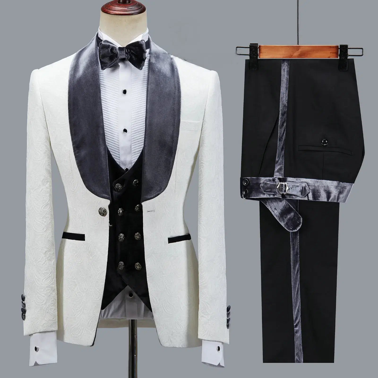 Color: Yellow, Size: M - Floral Jacket Men Suit Slim Fit Wedding Tuxedo Navy Blue Velvet Lapel Groom Party Suits Costume Homme Best Man Blazer