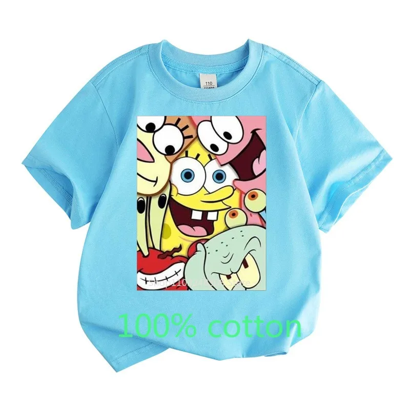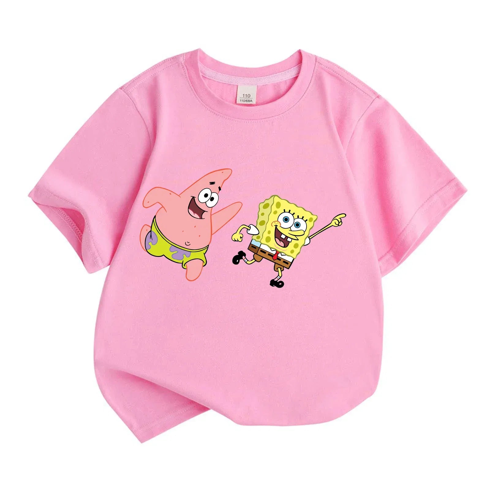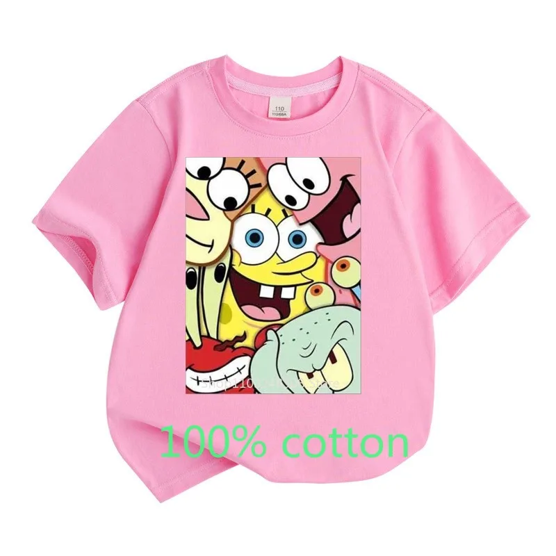 Color: Pink, Kid Size: 14T - Mr. Krabs Squidward Sandy Spongebob T-shirt 100%Cotton Children Round Neck Short-sleeved Boys Girls Fashion Kids Clothes
