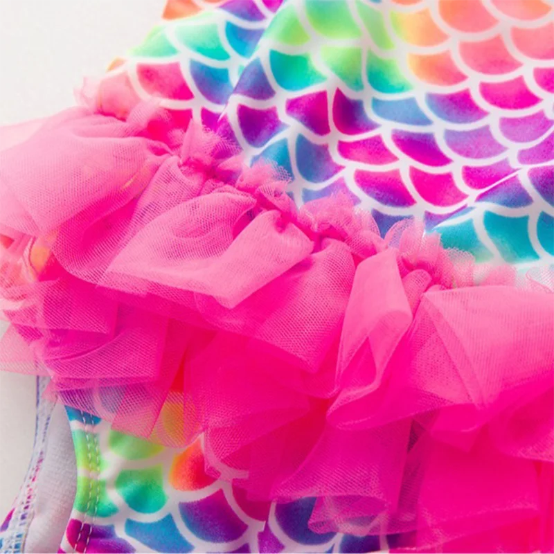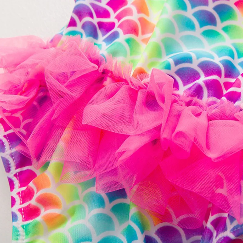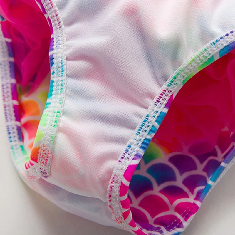 One-piece girls swimsuit, fish scales Designed with a cute ruffle hips.