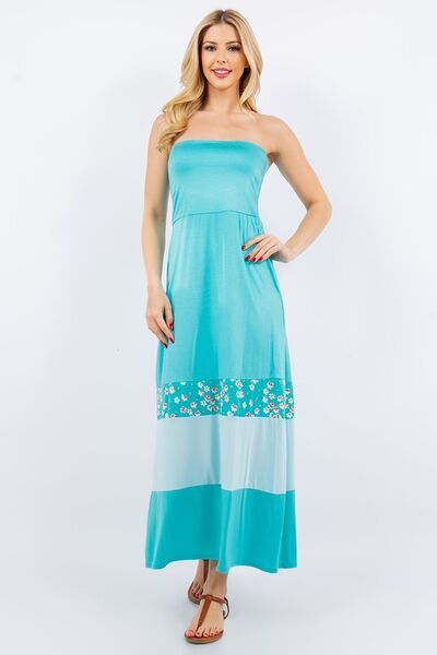 Celeste Full Size Color Block Tube Maxi Dress Plus Size
