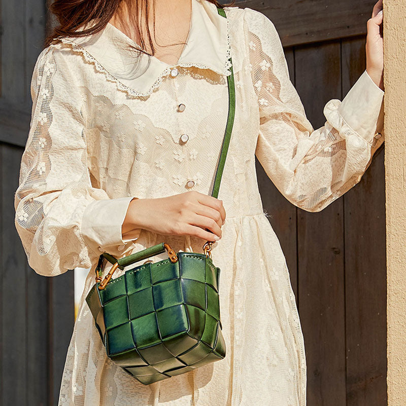 Skeleton-skin Retro Handmade Genuine Leather Woven Vegetable Basket Small Bag